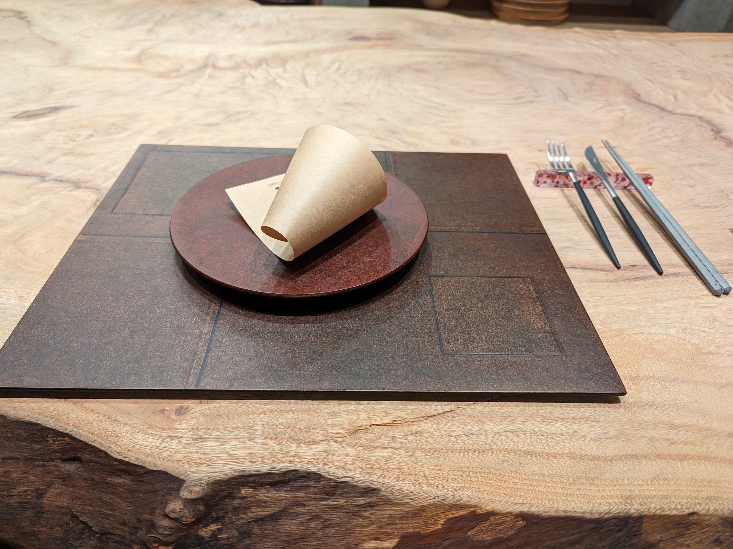 店内は一枚板のテーブルやこだわりの食器など、期待感あふれる造りになっています。